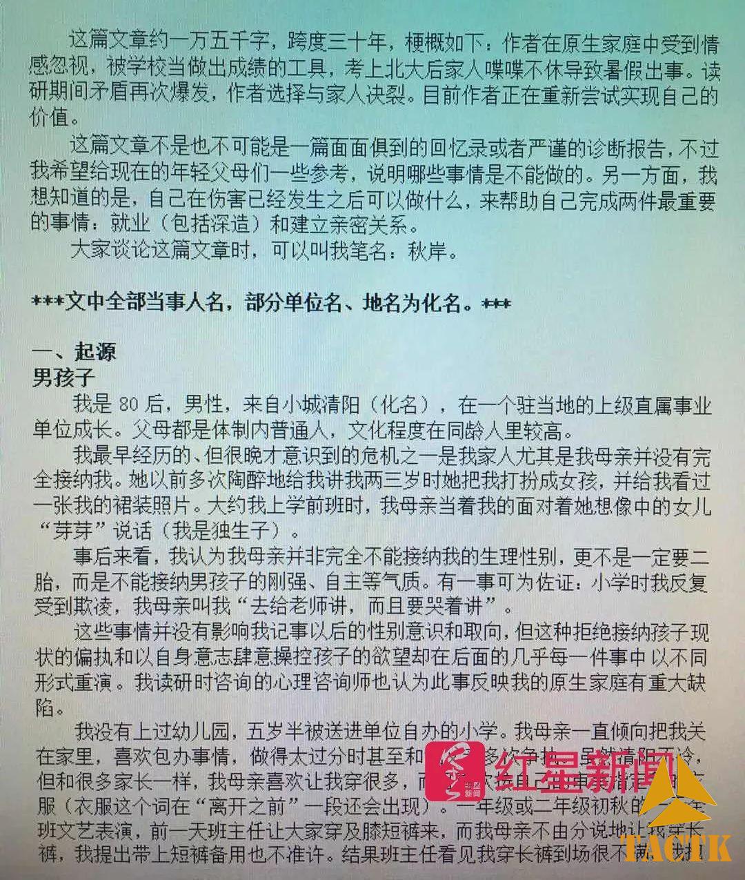 他的文字里,满是父母的“肆意操控”、“冲突”和“炫耀”,父母的过度关爱以及缺乏亲情,让他没能树立足够的信心。