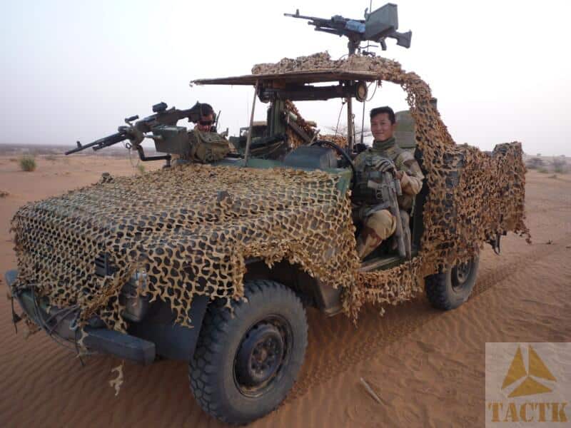 我乘坐的先头车是一辆经过改装的、带有沙色伪装网的标志4X4,车上有三名乘员。全队是由两辆越野车、两辆全地形卡车和一辆轻型装甲车组成,共有14人。