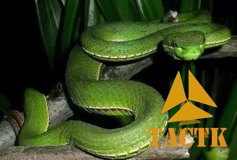 竹叶青比较好认,它的特点是全身绿、眼睛红、尾巴黄。眼睛绿,尾巴也绿的蛇,是翠青蛇,它是无毒蛇。竹叶青这家伙喜欢挂在树上,人从树下过,脖子碰到它,就会被咬到脖子,脖子肿起来,压住气管,就会把人给闷死。